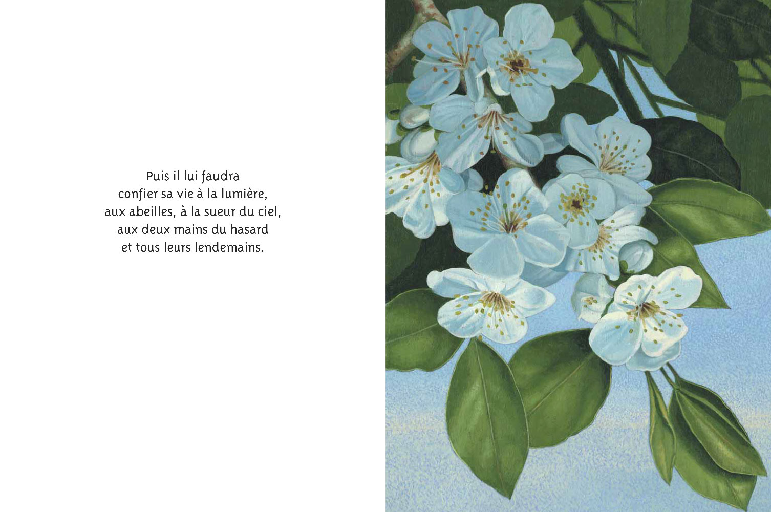 En vis-à-vis de chaque poire, des phrases très courtes qui réagissent tout en nous faisant penser au temps qui file, à la vie, à la différence, à l'art et qui nous initient aussi à l’observation…