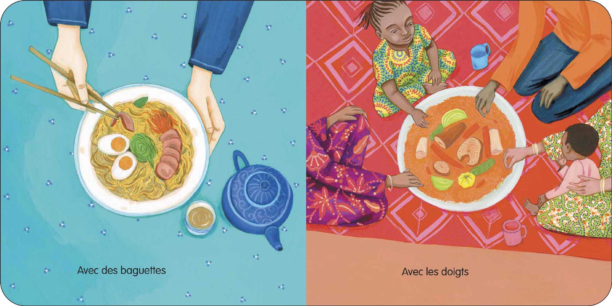 Voici un titre que l'on nous a souvent réclamé dans la collection Tip Tap : « Tu manges quoi ? » ! L'idée est de donner l'occasion de commenter, discuter, émettre des hypothèses… ouvrir un appétit aux couleurs du monde tout en découvrant les cuisines du monde.